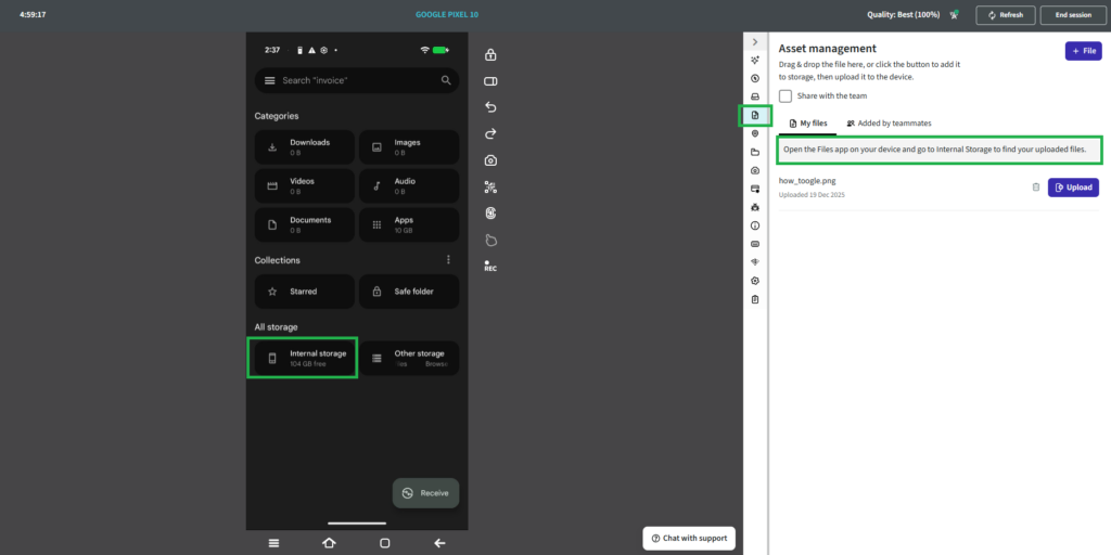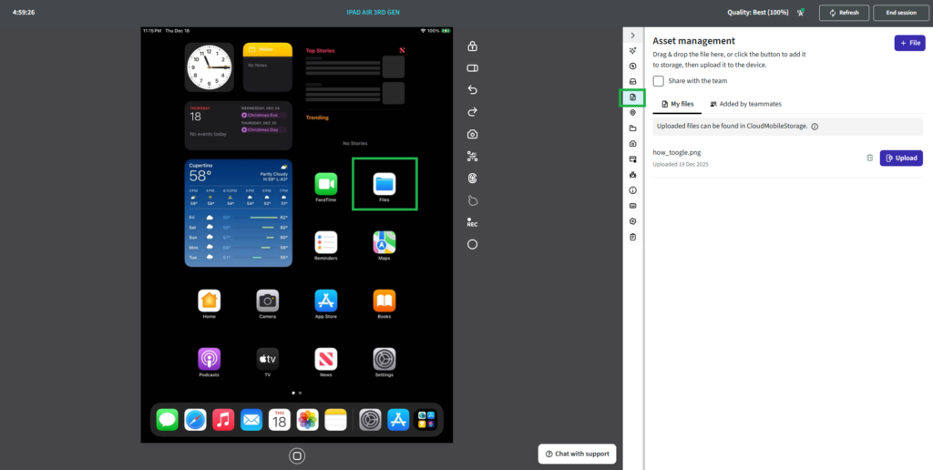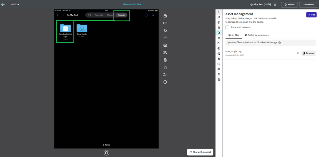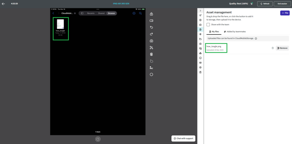 Note: The process for locating uploaded files differs between iOS and Android devices.