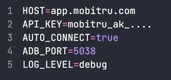 - Place the .env file in the same folder where the Mobitru Connect application is kept.