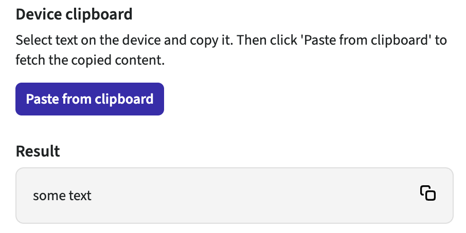 Select text on the device and copy it. Then click ‘Paste from clipboard’ to fetch the copied content.