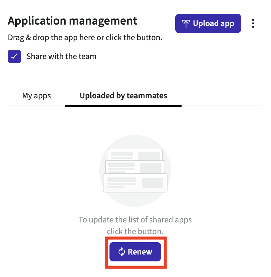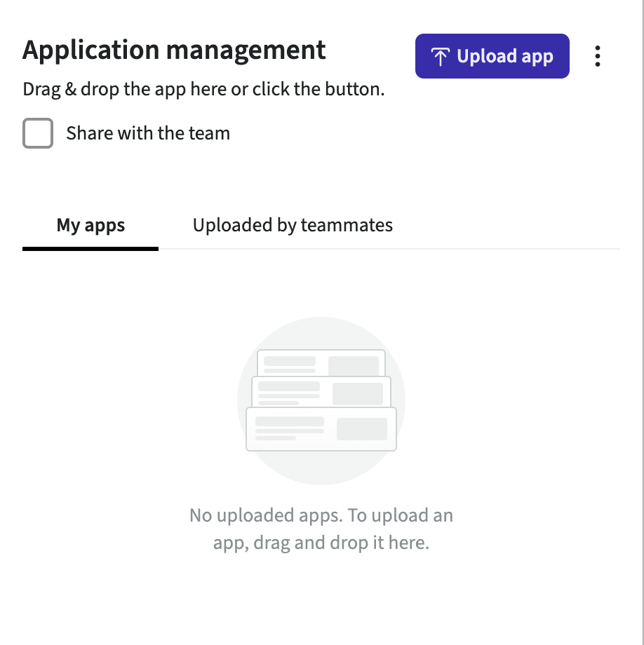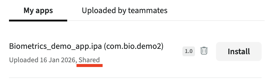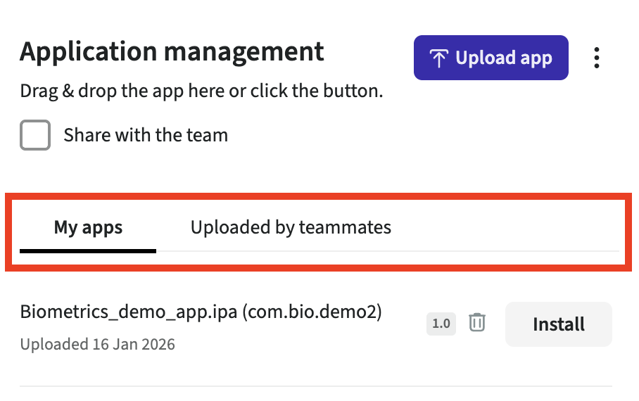 You will have two tabs as soon as an application has been uploaded or shared: My apps and Uploaded by teammates.