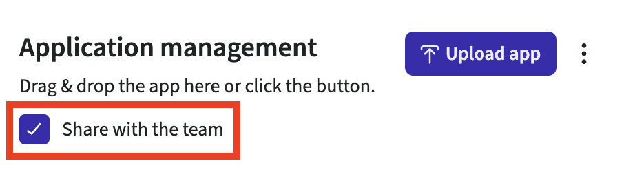 - Checked. If the checkbox is chosen, all the apps you upload will be shared with the team.